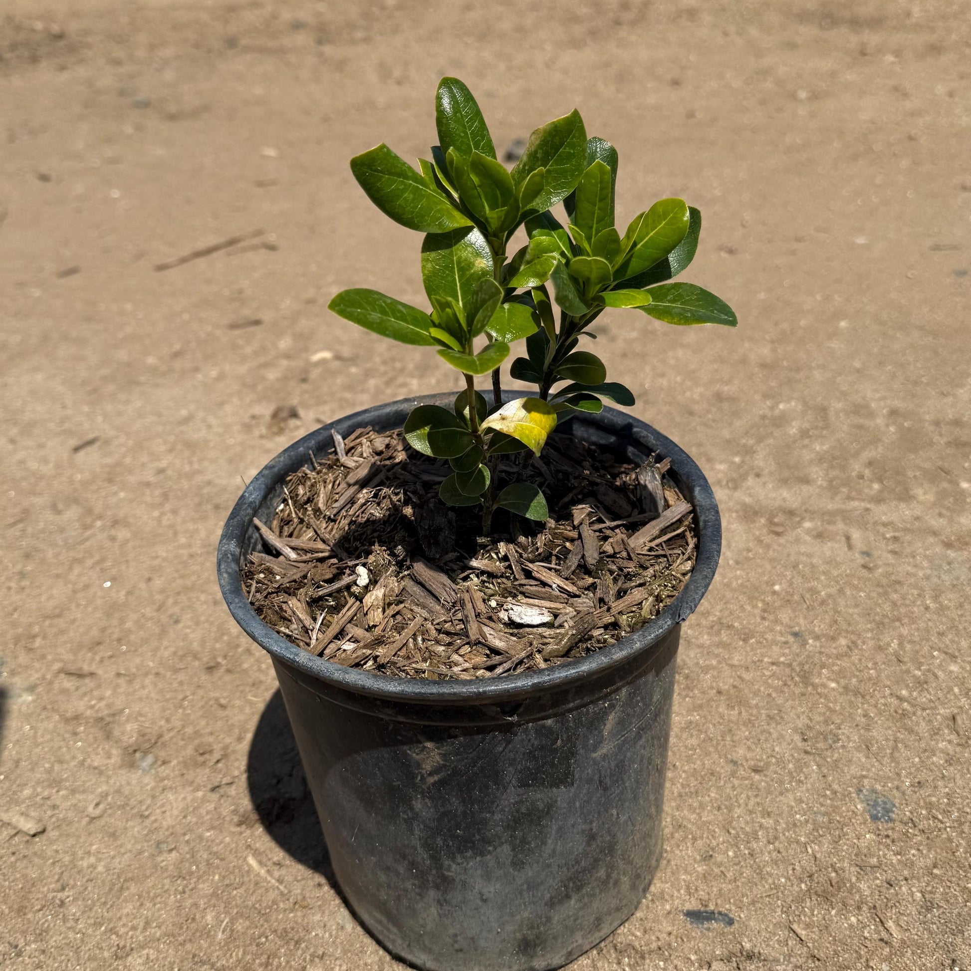 Japanese Cheesewood (Pittosporum tobira) is a dense, evergreen shrub featuring glossy, dark green leaves and a naturally mounded shape. It can grow up to 10–15 feet tall and wide, but is easily maintained at smaller sizes with pruning. This adaptable plant thrives in full sun to partial shade and prefers well-drained soil. Clusters of creamy white, fragrant flowers resembling orange blossoms appear in spring, adding seasonal interest. Japanese Cheesewood is drought-tolerant once established and is suitable for USDA Hardiness Zones 8 to 11.