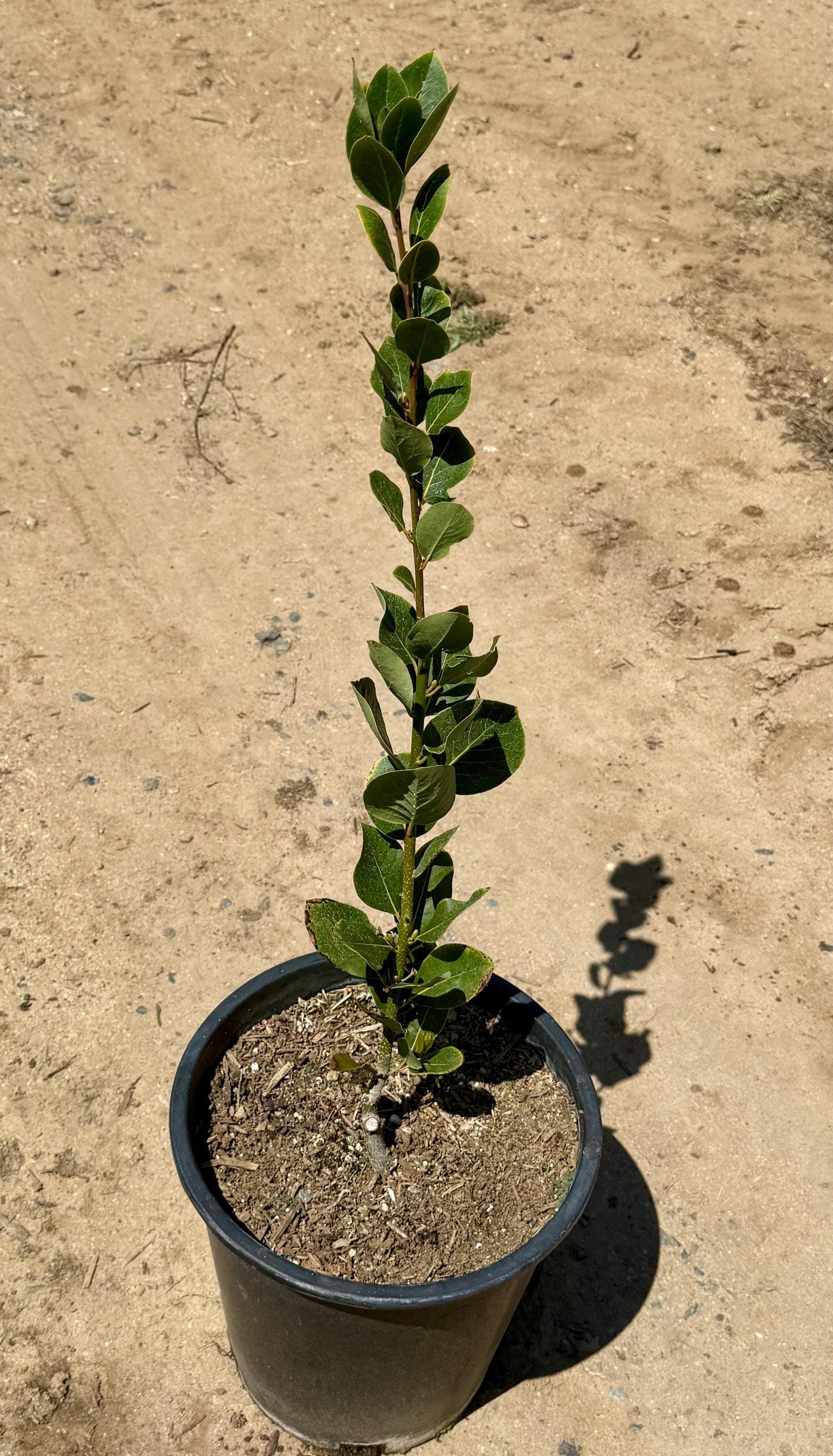 Bay Laurel (Laurus nobilis) is a versatile evergreen shrub or small tree, celebrated for its glossy, aromatic leaves commonly used in culinary dishes like soups and stews. This Mediterranean native features leathery, dark green foliage and can be pruned into hedges, topiaries, or grown as a container specimen. In the ground, it typically reaches 10 to 30 feet tall, but when container-grown, it can be maintained at 4 to 8 feet with regular pruning. Bay Laurel thrives in full sun to partial shade and prefers well-drained soil with moderate watering; once established, it exhibits notable drought tolerance. Hardy in USDA Zones 8–10, it can be grown indoors in cooler climates, provided it receives ample sunlight. Its slow growth and adaptability make it an excellent choice for both ornamental and edible gardens.