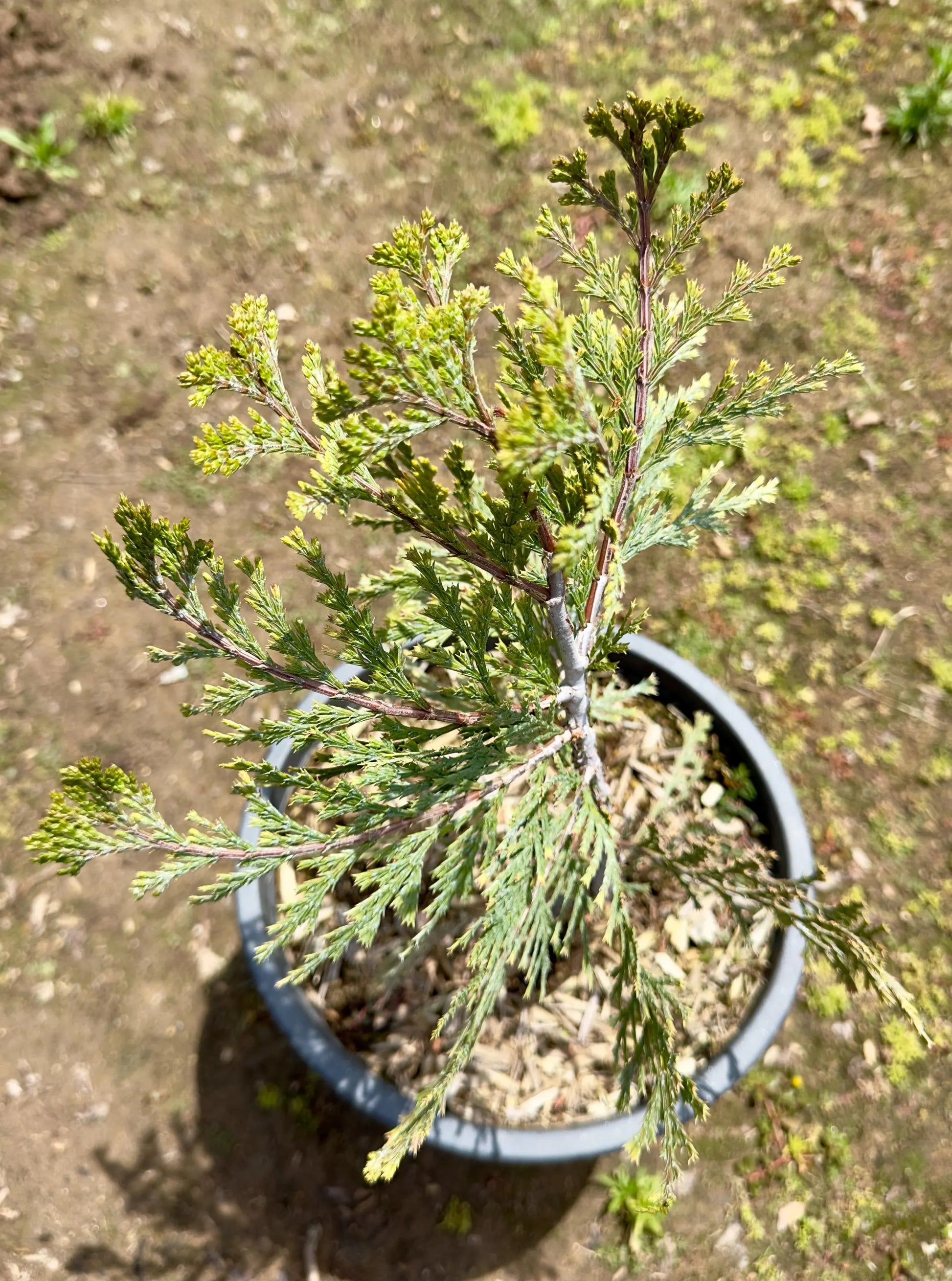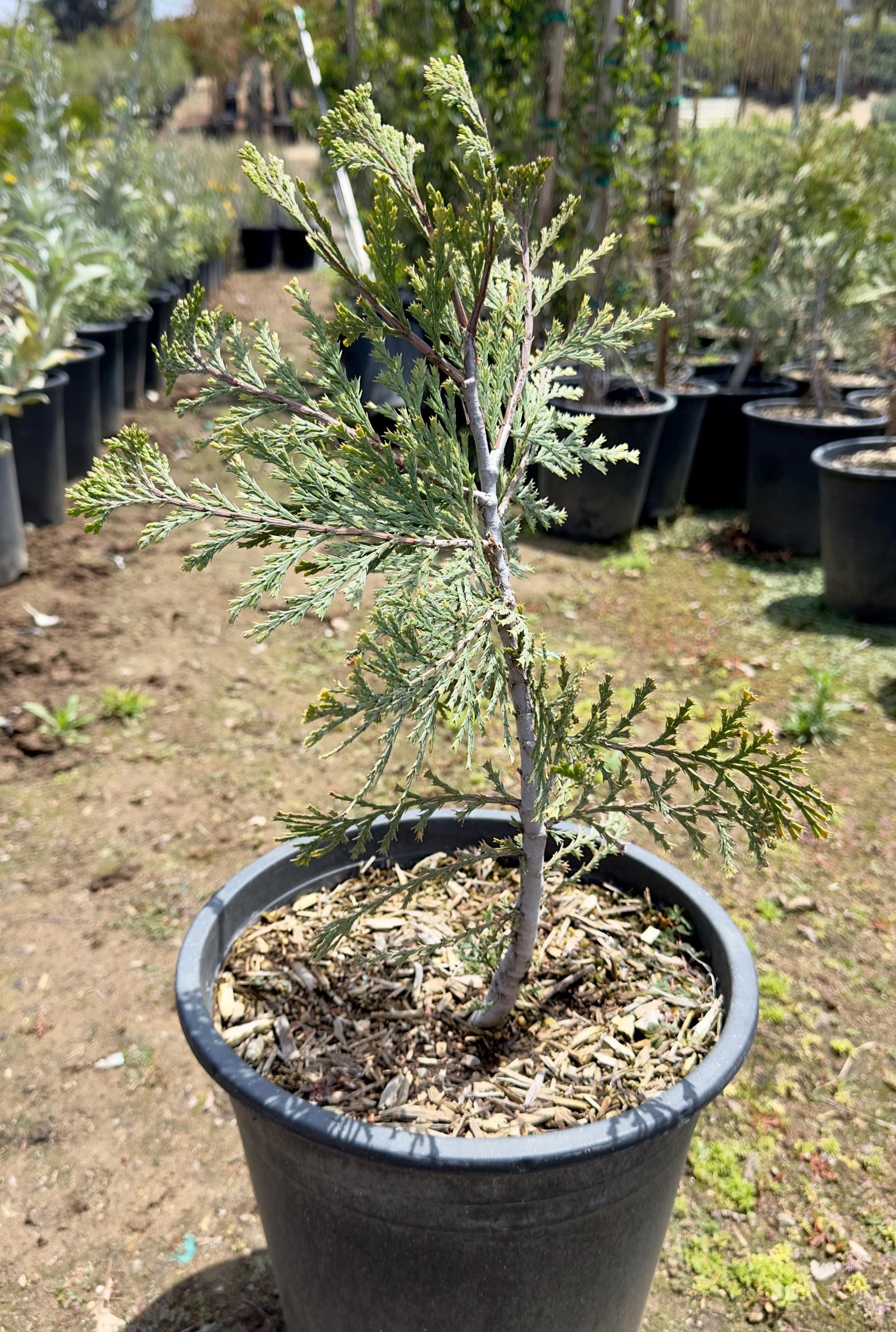 California Incense Cedar (Calocedrus decurrens) is a majestic evergreen conifer native to the western United States, prized for its tall, narrow form and aromatic, scale-like foliage. This slow-growing tree typically reaches 30 to 50 feet in cultivation, with a spread of 8 to 12 feet, making it an excellent choice for privacy screens, windbreaks, or as a striking specimen in large landscapes. Thriving in full sun to partial shade, it prefers well-drained soils and exhibits notable drought tolerance once established, making it ideal for low-water and xeriscape gardens. Hardy in USDA zones 5 through 8, California Incense Cedar is also resistant to deer and adapts well to various soil types, provided they are not waterlogged. Its reddish-brown, furrowed bark and symmetrical, columnar shape add year-round interest and structure to diverse garden settings.