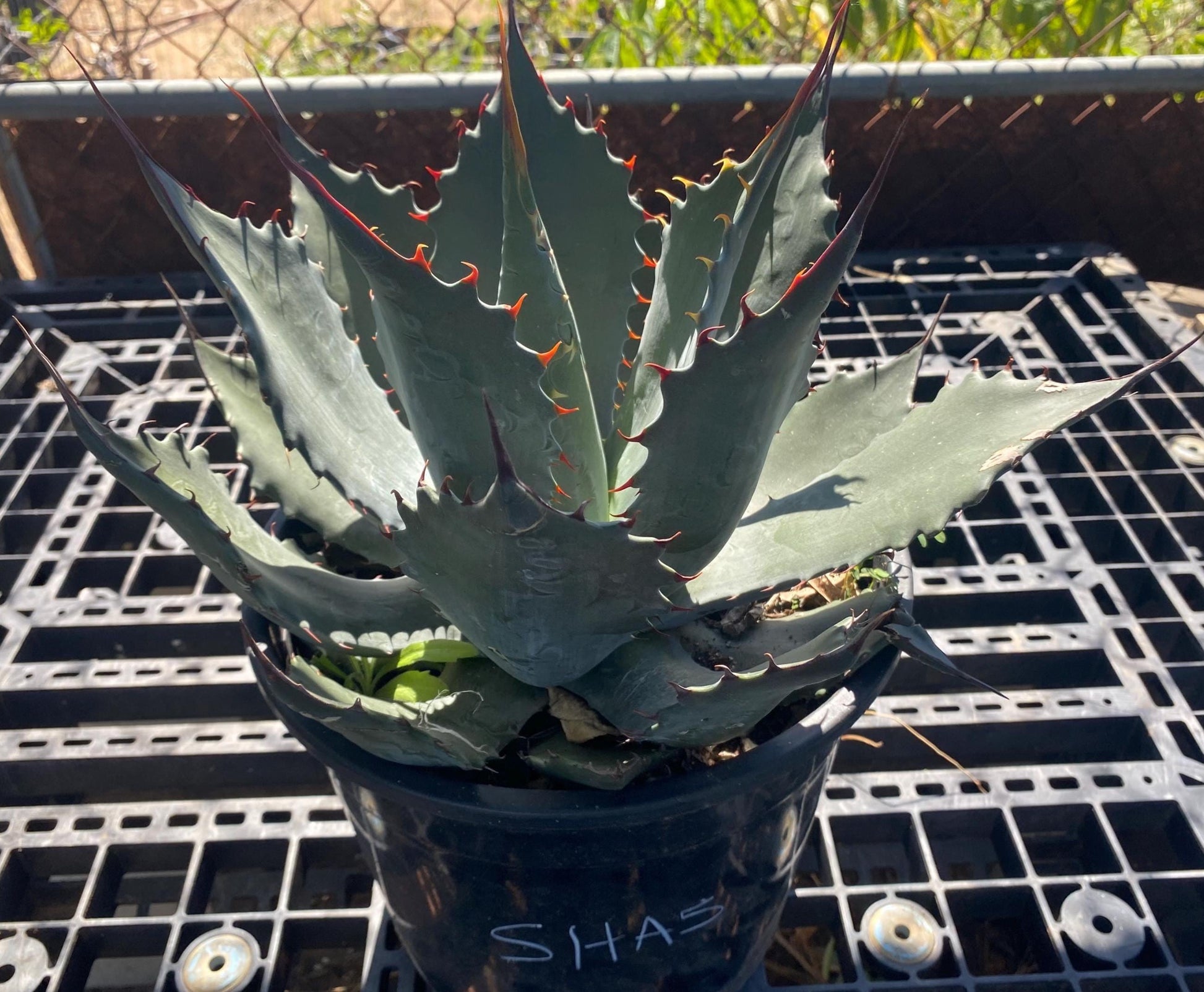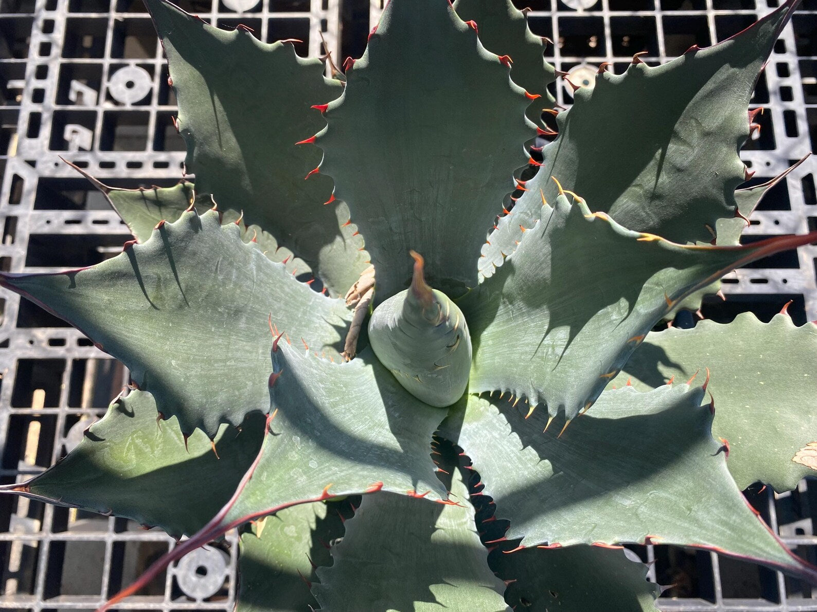 Agave shawii is a striking barrel-style succulent featuring rosettes of thick, ovate green leaves edged with hooked red spines and crowned with a stiff terminal point. It typically grows to about 2 to 3 feet tall and 3 to 4 feet wide, and over time forms clumping colonies via offsets. Thriving in full sun and gritty, well-drained soil, this drought-tolerant agave produces a dramatic 8–12 foot flowering stalk crowned with yellow-green blooms in late winter to early summer, then the rosette dies back. Hardy in USDA Zones 9b–11b, it’s perfect for xeric gardens and coastal succulent landscapes.