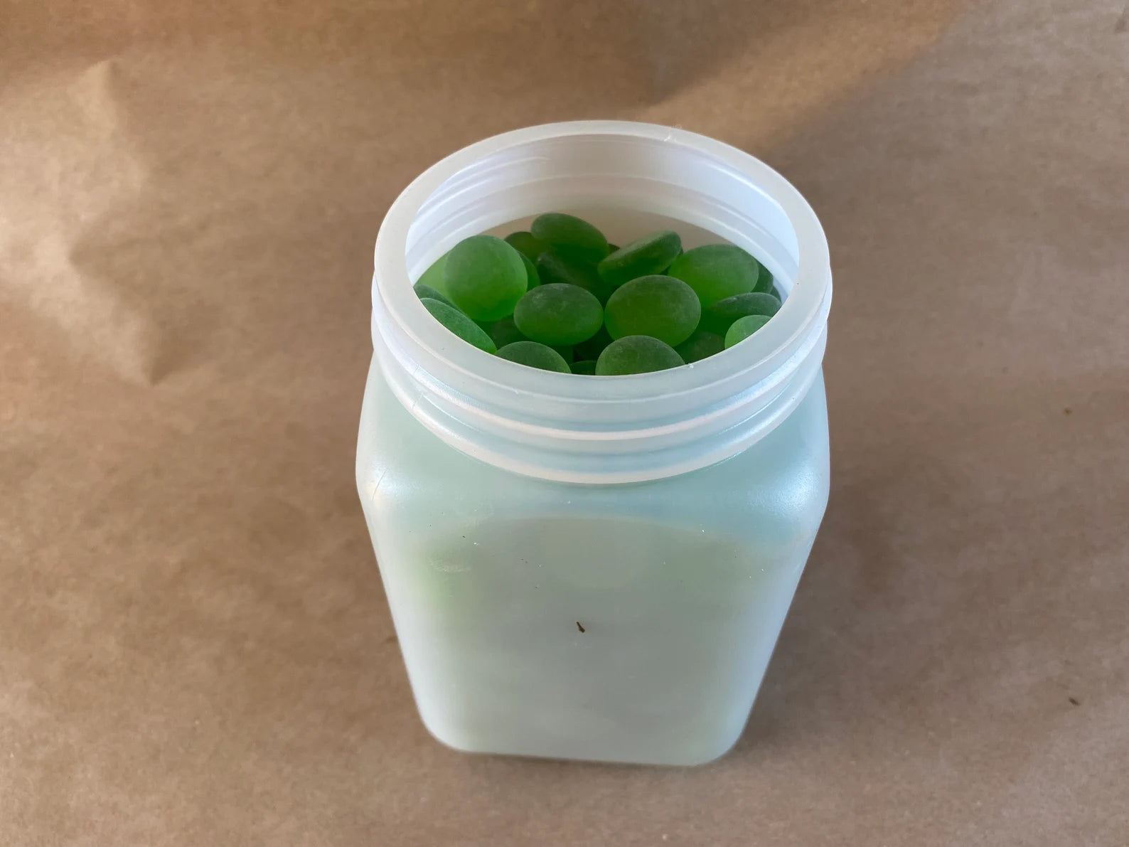Shipped in a reusable plastic jar. Just rinse and dry rocks to store for the next use.