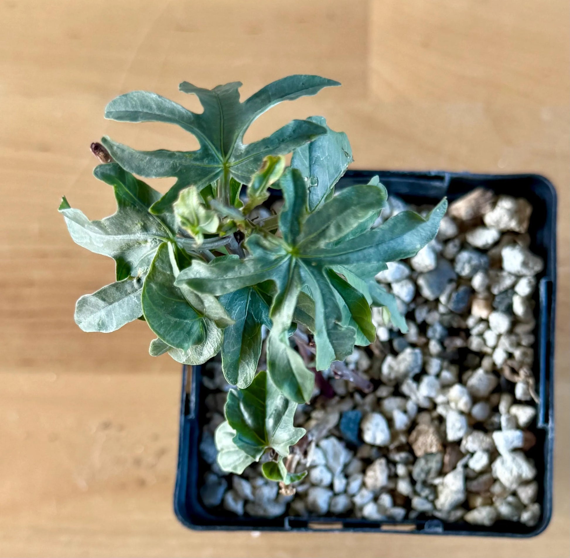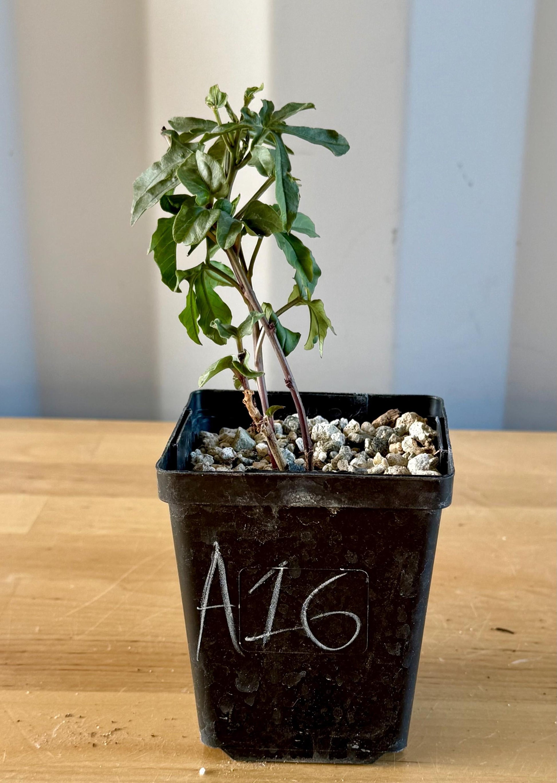 Ipomoea platensis is a rare, caudiciform morning glory prized for its swollen, woody base (caudex) and vining, deciduous stems with attractive green leaves. The thickened caudex can grow into an eye-catching, sculptural form over time, while the vines produce beautiful purple, funnel-shaped flowers during the growing season. In cultivation, the caudex can reach up to 12 inches wide, with vines stretching several feet when actively growing. This plant loves full sun to partial shade, requires excellent drainage, and prefers infrequent deep watering during its growing period. It naturally goes dormant in winter, dropping its leaves while the caudex remains an architectural focal point. Ipomoea platensis is ideal for collectors of caudiciforms and bonsai-style succulent plants. Perfect for pots, patio displays, or indoor growers with bright light.