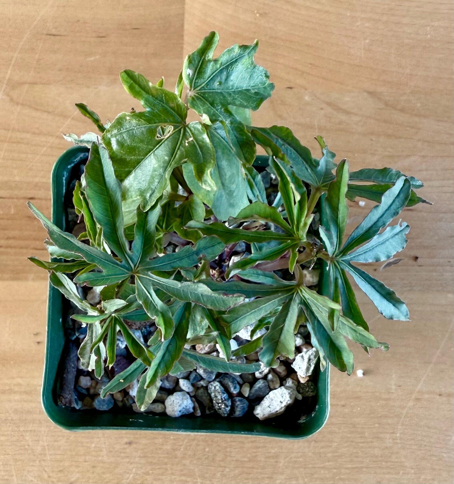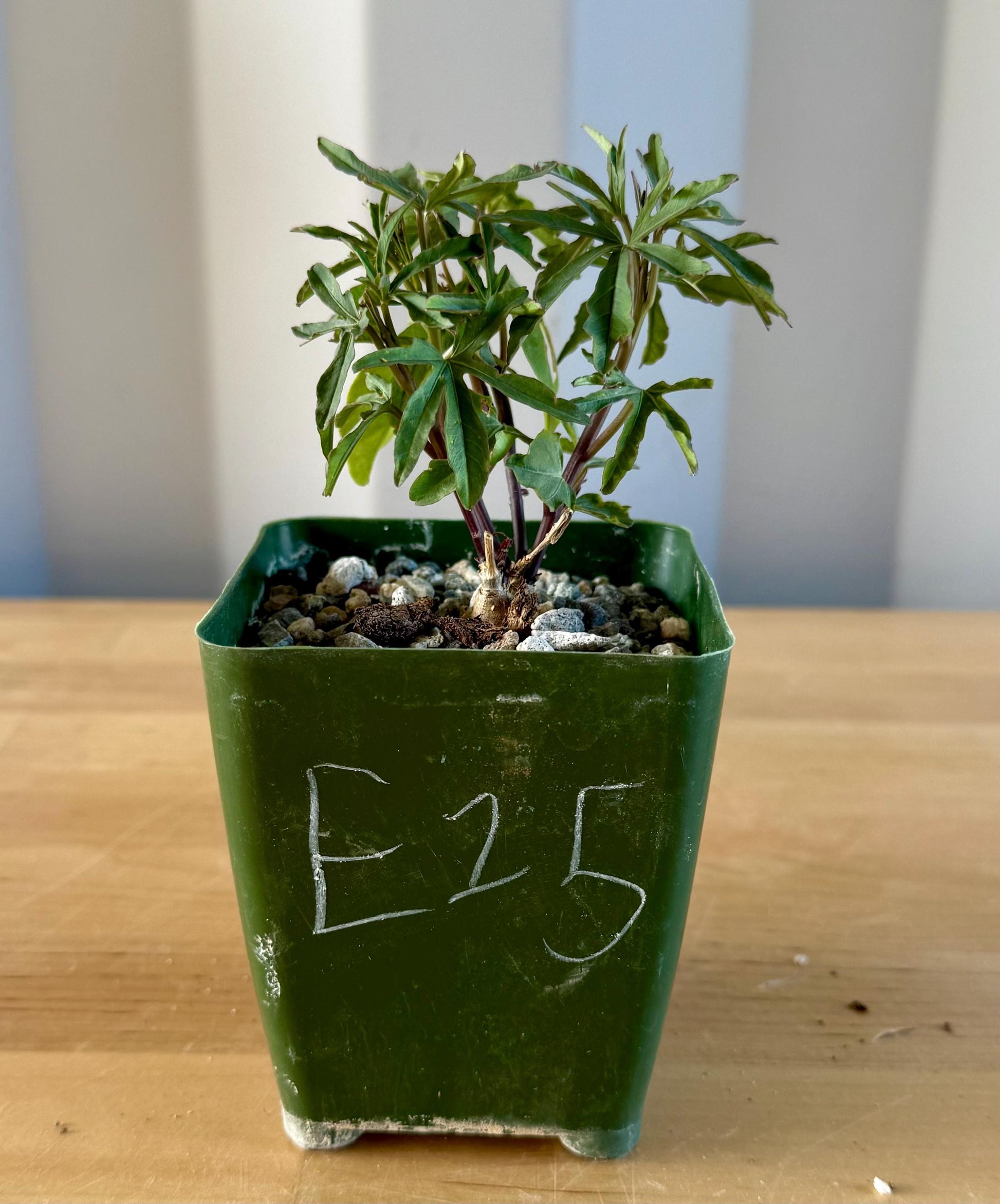 Ipomoea platensis is a rare, caudiciform morning glory prized for its swollen, woody base (caudex) and vining, deciduous stems with attractive green leaves. The thickened caudex can grow into an eye-catching, sculptural form over time, while the vines produce beautiful purple, funnel-shaped flowers during the growing season. In cultivation, the caudex can reach up to 12 inches wide, with vines stretching several feet when actively growing. This plant loves full sun to partial shade, requires excellent drainage, and prefers infrequent deep watering during its growing period. It naturally goes dormant in winter, dropping its leaves while the caudex remains an architectural focal point. Ipomoea platensis is ideal for collectors of caudiciforms and bonsai-style succulent plants. Perfect for pots, patio displays, or indoor growers with bright light.