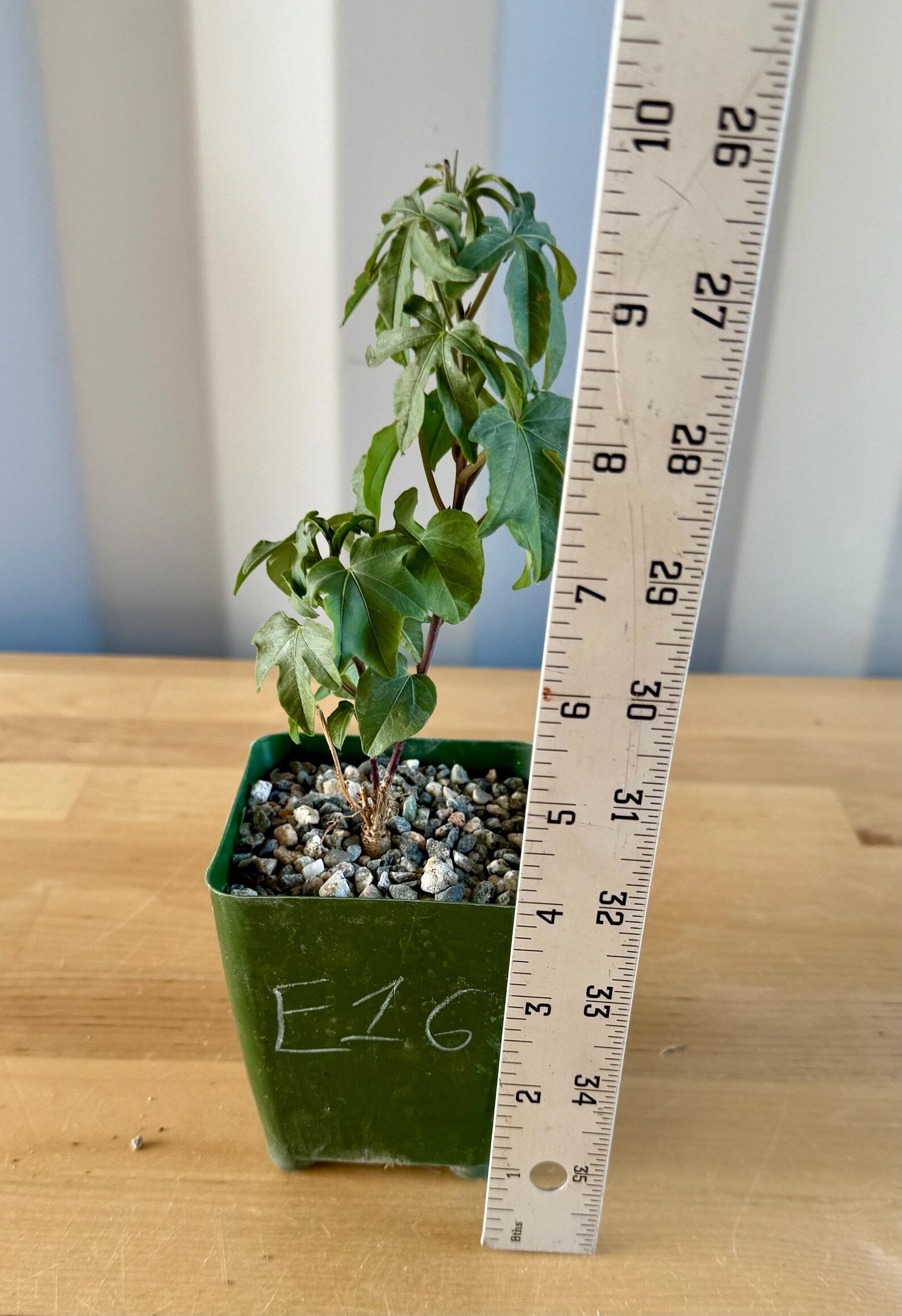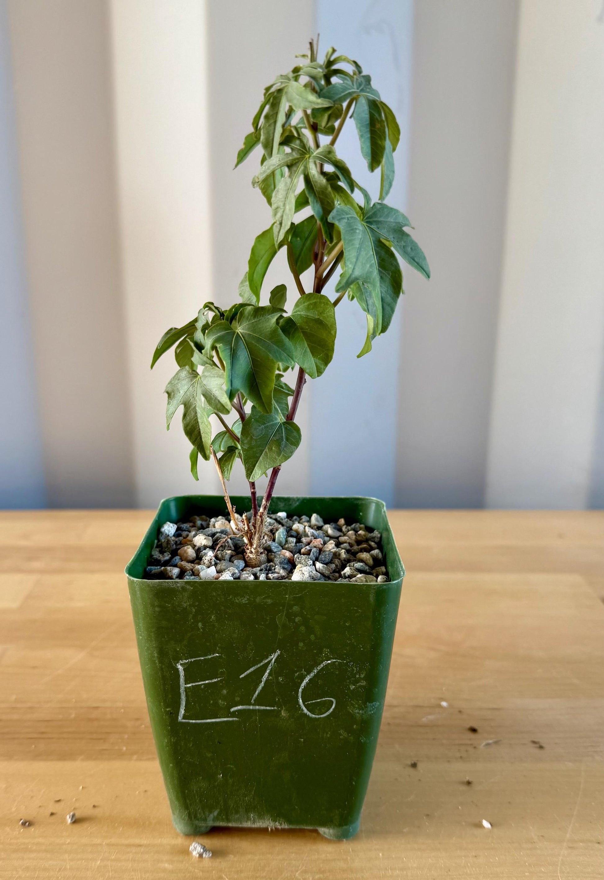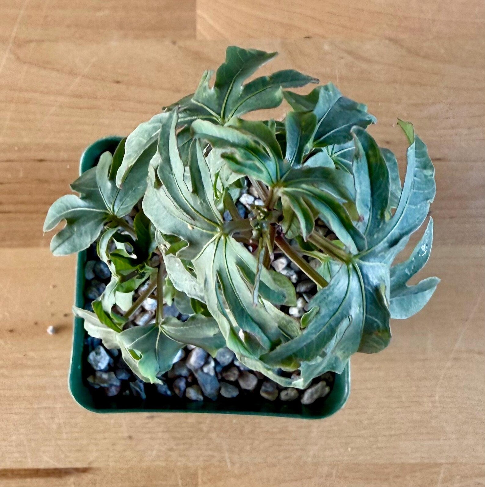 Ipomoea platensis is a rare, caudiciform morning glory prized for its swollen, woody base (caudex) and vining, deciduous stems with attractive green leaves. The thickened caudex can grow into an eye-catching, sculptural form over time, while the vines produce beautiful purple, funnel-shaped flowers during the growing season. In cultivation, the caudex can reach up to 12 inches wide, with vines stretching several feet when actively growing. This plant loves full sun to partial shade, requires excellent drainage, and prefers infrequent deep watering during its growing period. It naturally goes dormant in winter, dropping its leaves while the caudex remains an architectural focal point. Ipomoea platensis is ideal for collectors of caudiciforms and bonsai-style succulent plants. Perfect for pots, patio displays, or indoor growers with bright light.