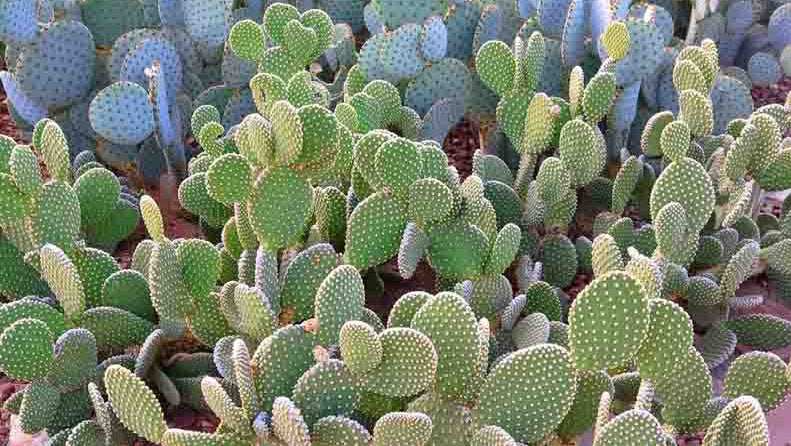 The Opuntia microdasys ‘Funny Bunny’, also known as the Bunny Ear Cactus, is a charming cactus with flat, rounded pads that resemble rabbit ears, covered in soft-looking white glochids instead of spines, giving it a unique and whimsical appearance. This compact cactus typically grows to 2–3 feet tall and 3–6 feet wide, forming a dense, eye-catching cluster over time. It thrives in full sun and requires very low water, making it perfect for xeriscaping, rock gardens, or container growing. In the right conditions, it blooms in late spring to early summer, producing bright yellow flowers that may be followed by small red-purple fruit. Its playful form and easy-care nature make it a standout choice for both indoor collections (with plenty of light) and outdoor desert landscapes. The ‘Funny Bunny’ is especially valued for its combination of low-maintenance growth and unique, decorative appeal. USDA Hardiness Zones 9–11.