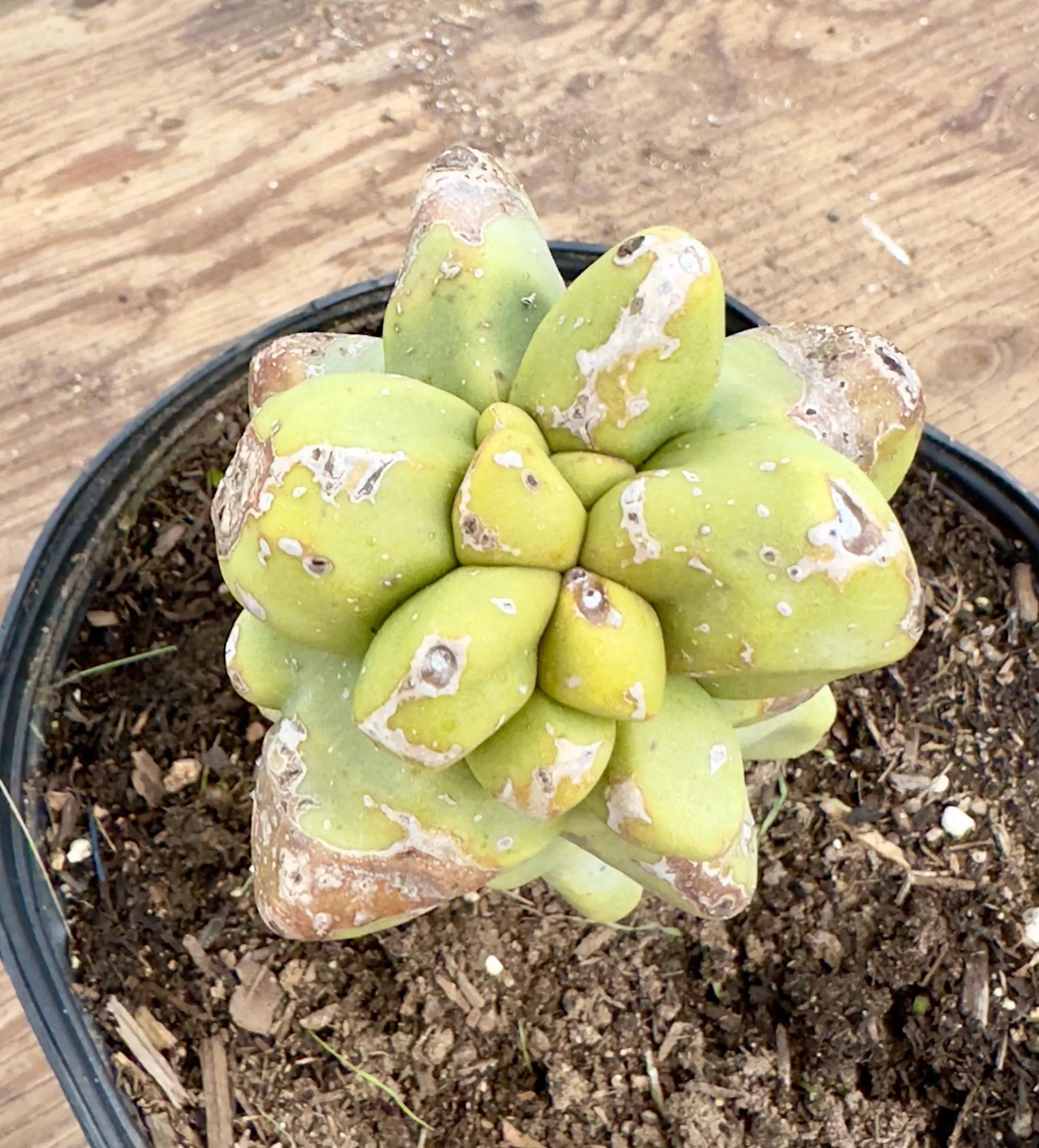 All of our plants are shipped bare-root and without their original nursery pot. This is done both to protect the plant and to reduce shipping expenses. We pack our products by hand and take great care to ensure they arrive at their final destination safely. Upon receiving your plants, make sure to remove them from their packaging immediately, repot them using dry soil, and provide ample sunlight. Water as needed, making sure to water again only when the soil is completely dry. Succulents are very hardy and will rebound easily with proper care.