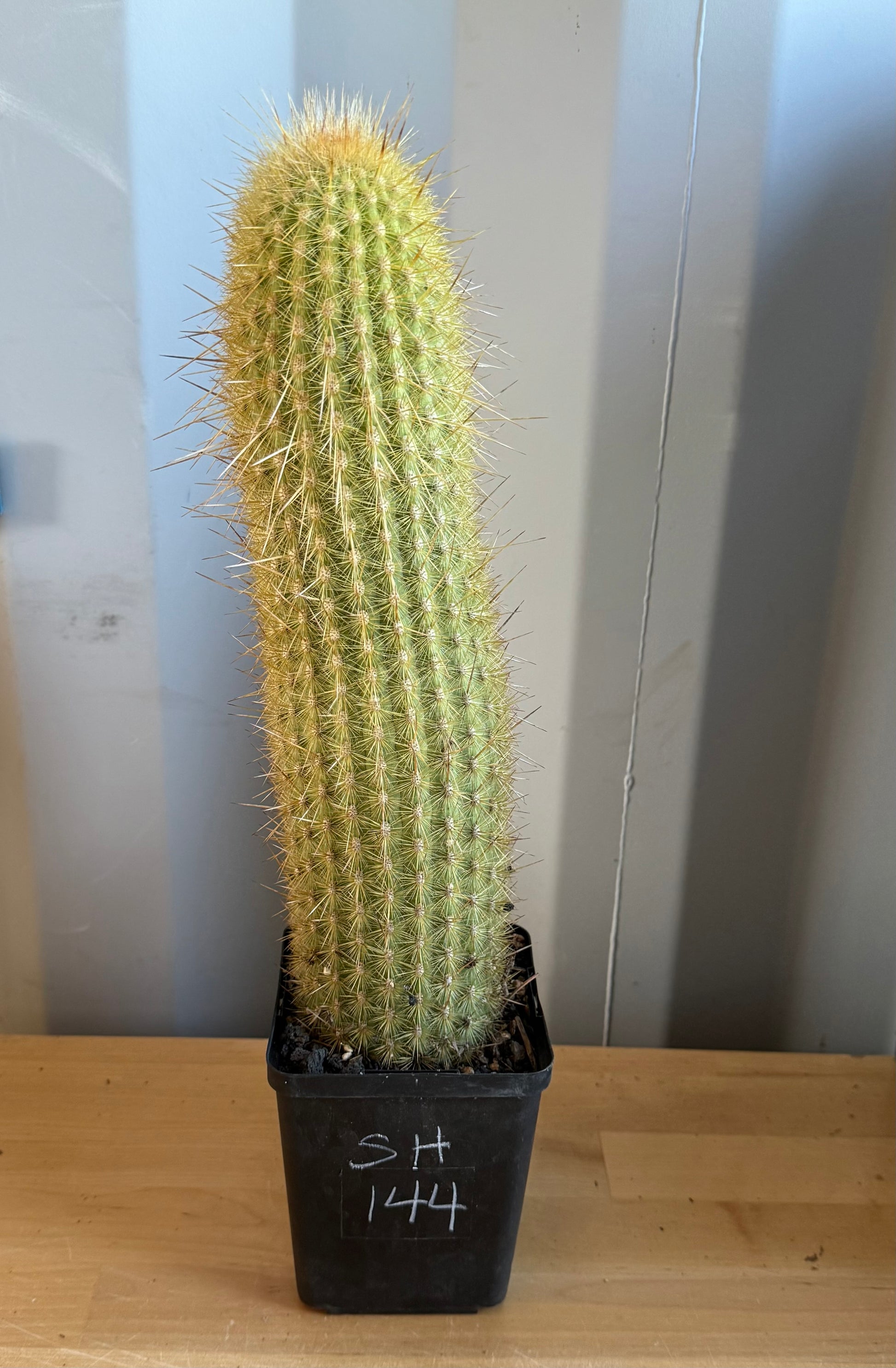 The Weberbauerocereus winterianus is a striking columnar cactus with tall, ribbed stems covered in dense clusters of spines that give it a textured, sculptural appearance. This slow-growing cactus can reach up to 15 feet in height and 2–3 feet in diameter, making it a dramatic focal point for any garden or collection. It thrives in full sun and requires minimal water, preferring well-draining soil to prevent root rot. In its native environment, it blooms in late spring to summer, producing large, nocturnal white to cream flowers that open in the evening and attract pollinators like moths and bats. Its drought tolerance and sculptural form make it ideal for xeriscaping, desert gardens, or as a standout potted specimen. With low-maintenance care and striking vertical growth, it’s perfect for gardeners seeking a unique and resilient cactus. USDA Hardiness Zones 9–11.